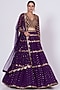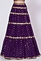 Featuring a purple tiered lehenga in net base with mughal butta hand embroidery. It is paired with an embroidered blouse in georgette base and a net dupatta.Accentuate this designer lehenga set with a pair of heels and polki jewellery for your wedding/sangeet/engagement/trousseau look.