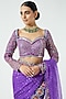 Featuring a purple saree in silk organza base with mirror and sequin details. It is paired with a georgette blouse. Accentuate it with dangler earrings and heels for a wedding or engagement ceremony.