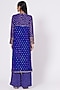 Featuring a royal blue kurta in georgette base with thread, sequins, and zari embroidery. It is paired with matching palazzo pants and a dupatta.