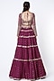 Featuring a wine lehenga in georgette and net base with embroidery. It is paired with an embroidered blouse and a net dupatta. Accentuate this statement lehenga with a pair of heels and statement jewellery for your wedding/sangeet/engagement/trousseau look.