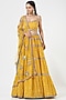 Featuring a yellow tiered lehenga in georgette base. It is paired with a matching blouse and a net dupatta. Accentuate this statement lehenga with a pair of heels and statement jewellery for your wedding/sangeet/engagement/trousseau look.
