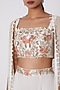 Featuring an ivory cape for girls set in dupion silk, viscose georgette, and mukaish georgette base with aari and thread hand embroidery. This set consists of a crop top, skirt, belt, and mukaish dotted cape for girls.