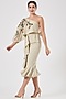 Featuring a mint green one shoulder midi dress in crepe base with velvet sequins embroidery and frills.