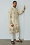 Featuring a beige kurta in chanderi base with aari embroidery. It is paired with pants. Perfect wear for pre-wedding or festive occasions.