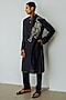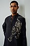 Featuring a charcoal black kurta in chanderi base with resham hand embroidery. It is paired with pants. Perfect wear for festive occasions.