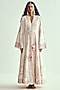 Featuring an ivory anarkali in chanderi base with aari embroidery, pearl beads and loop detailing. It is paired with a long jacket. Accentuate it with pearl earrings and juttis for a graceful, traditional look, perfect for festive gatherings or pooja ceremonies.