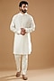 Featuring an ivory kurta in chanderi handloom base with contrast stitch detail. It is paired with pyjama pants. Perfect wear for a festive occasion, exuding traditional charm and elegance.