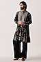 Featuring a black handloom phiron style kurta in chanderi base with resham embroidery. It is paired with pyjama pants. Style it with kolhapuri sandals for a festive occasion, sangeet or engagement ceremony.