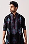 Featuring a black handloom kurta in chanderi base with resham embroidery. It is paired with pyjama pants. Style it with kolhapuri sandals for a festive occasion, sangeet or engagement ceremony.