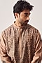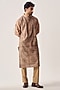 Featuring a hazelnut-colored handloom kurta in chanderi base with aari embroidery. It is paired with pyjama pants. Style it with kolhapuri sandals for a festive occasion or an intimate pooja ceremony.