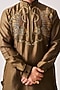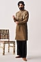 Featuring an olive brown handloom kurta in chanderi base with resham embroidery. It is paired with pyjama pants. Style it with kolhapuri sandals for a festive occasion or an intimate pooja ceremony.