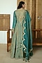Featuring a moss green anarkali in chanderi handloom base with multi-colored dori, marori, sequins, cutdana, and beads hand embroidery, including woven stripe detailing. It is paired with flared pants and a dupatta. Accentuate it with jewellery and heels for a festive celebrations or wedding functions.