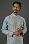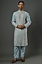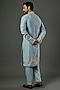 Featuring a pale blue kurta in chanderi handloom base with sequins, cutdana, beads and aari embroidery. It is paired with matching pants.