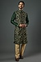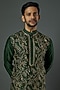 Featuring a pine green kurta in chanderi handloom base with sequins, cutdana, beads and aari embroidery. It is paired with pants. Accentuate it with juttis and a watch for a mehendi ceremony or festive occasion, exuding traditional charm and elegance.