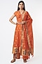 Featuring a coral kurta in handwoven banarasi cotton base with zari borders. It is paired with a matching pants and a dupatta.