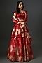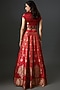 Featuring a red handwoven lehenga in banarasi silk base. It is paired with a matching unstitched blouse and a kora silk dupatta.