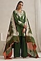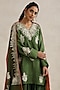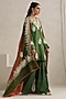 Featuring a green kurta in cotton and silk base with kashmiri golden tilla embroidery. It is paired with farshi salwar pants and an organza dupatta. Accentuate it with heels and dangler earrings for mehendi ceremonies.