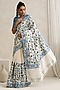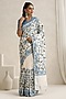 Off-White & Blue Silk Kashmiri Aari Embroidered Saree Set