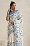 Featuring an off-white and blue saree in silk base with kashmiri aari embroidery. It is paired with a blue blouse. Accentuate it with heels and dangler earrings for a festive occasion.
