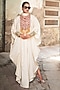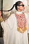 Featuring an off-white kaftan in silk base with kashmiri tilla and aari embroidery. Style with jhumkas, embroidered juttis, and soft waves for a vibrant festive look, perfect for sangeet, family gatherings, or pre-wedding rituals.