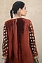 Featuring a rust dress in velvet base with kashmiri tilla embroidery. Accentuate it with statement earrings and heels for a refined ensemble, ideal for festive occasions or wedding ceremonies.