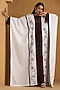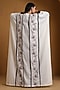 Featuring a white and brown abaya in crepe and cotton base with kashmiri embroidery. It is paired with a maxi dress. Style it with minimal jewellery, flats and a sling bag for summer outings, vacation wear or daytime gatherings.