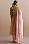 Featuring a chartreuse green handloom kurta in organza base with hand embroidery. It is paired with striped cotton chanderi pants and a dupatta. Style it with dangler earrings and heels for festive occasions.
