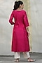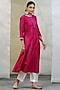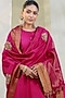 Featuring a pink handloom kurta in pure chanderi silk base with embroidery and panels. It is paired with contrasting white pants and a dupatta.