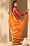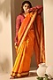 Featuring an orange shaded handloom saree in pure chanderi silk base with a tissue border. It is paired with an unstitched blouse.