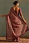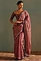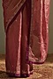 Featuring a purple saree in tissue silk base with hand embroidery, including zardosi and raw silk border detailing. Style it with heels and statement earrings for weddings.