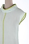 Featuring an aqua blue midi dress in cotton linen base with lime green piping.