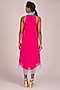 Featuring a fuchsia short-long hem dress in georgette base with mandarin high collar and ruffles. This contains only one piece.