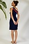 Presenting our one-shoulder dress from our collection, which perfectly shows the curve of your waist. The dress is made of pre-pleated polyester satin fabric and has a lake blue and ruby tape detail. This knee-length dress is flawless for dining and wine.