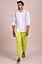 Featuring a white shirt in linen base with open collar, buttons, blue vertical stripe detailing, and full sleeves. This contains only one piece.