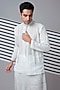 Presenting to you a kurta shirt in linen has detailed patchwork. It can be styled with a chevron pattern bandhgala and detailed stripe print dhoti. This elegant yet subtle shirt is all you need for a summer event or wedding party.