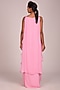Featuring a pink layered sleeveless dress in georgette and satin base with boat neck, long curved hem, and embroidered. This contains only one piece.