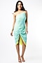 Featuring a sea green one-shoulder ruched dress in georgette base.