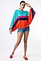 Featuring a turquoise and orange kaftan top in crepe base with color blocking. This contains only one piece.