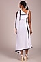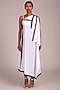 Featuring a white asymmetric dress in mundu base with one shoulder flap, drop collar, and black stripes. This contains only one piece.