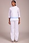 Featuring a white top in mundu base with funnel collar, blue stripes, and 3/4th sleeves. It is paired with matching pants.