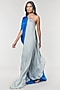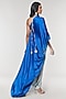 Elevate your style with our blue and grey one-shoulder floor-length dress in bamberg satin. The dress has ring and sequin disc tassels detailing. It includes a grey bamberg satin slip. Easy to wear that combines classic and contemporary styles.