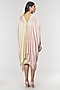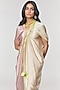 Elegant and classic blush and champagne dress is crafted in bamberg satin. The dress has ring detailings, shoulder-covered drape, sequin disc tassels, and a bamberg satin slip. Easy to wear that combines classic and contemporary styles.