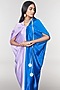 Elegant and classic lilac and blue dress is crafted in bamberg satin. The dress has ring detailings, shoulder-covered drape, sequin disc tassels, and a bamberg satin slip. Easy to wear that combines classic and contemporary styles.