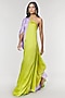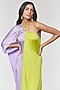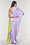 Elevate your style with our lilac and neon one-shoulder floor-length dress in bamberg satin. The dress has ring and sequin disc tassel detailings. It includes a neon bamberg satin slip. Easy to wear that combines classic and contemporary styles.