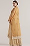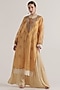 Featuring a mustard kurta in organza base with sequins, beads and chikankari hand embellishments. It is paired with a cream viscose maxi dress and a dupatta. Style it with dangler earrings and heels for festive occasions or wedding ceremonies.
