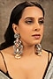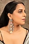 Featuring a pair of silver finish jhumka earrings studded with pearls, set in brass. It has a push back closure. Perfect for wedding celebrations, festive soirees or cultural gatherings adding a regal charm to every look.