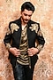 Featuring a black bomber jacket in italian suiting base with cutdana hand embellishments. Style it with pant and a pair of shoes for a reception, sangeet or cocktail.