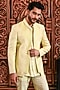 Featuring a mint green indowestern jacket in banarasi silk base with pintuck detail. It is paired with a shirt and palazzo. Style it with a pair of mojaris for a reception, sangeet, wedding or engagement ceremony.