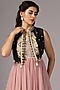 Featuring an antique pink anarkali in chiffon base. It is paired with organza palazzo pants and a black raw silk embroidered jacket. Accentuate with statement earrings and heels for festive occasion or wedding ceremonies.