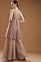 Featuring an antique pink pansy kurta in raw silk and chiffon base with jaal embroidery. It is paired with matching palazzo pants.